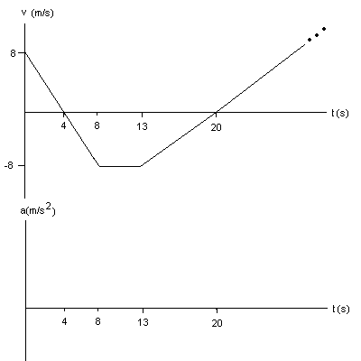 1. (26 points) The one–dimensional motion of a skateboard rider is shown below in the graph of the instantaneous velocity v vs. t. Assume for the purposes of this problem that the positive direction of motion is rightward along the x-axis.